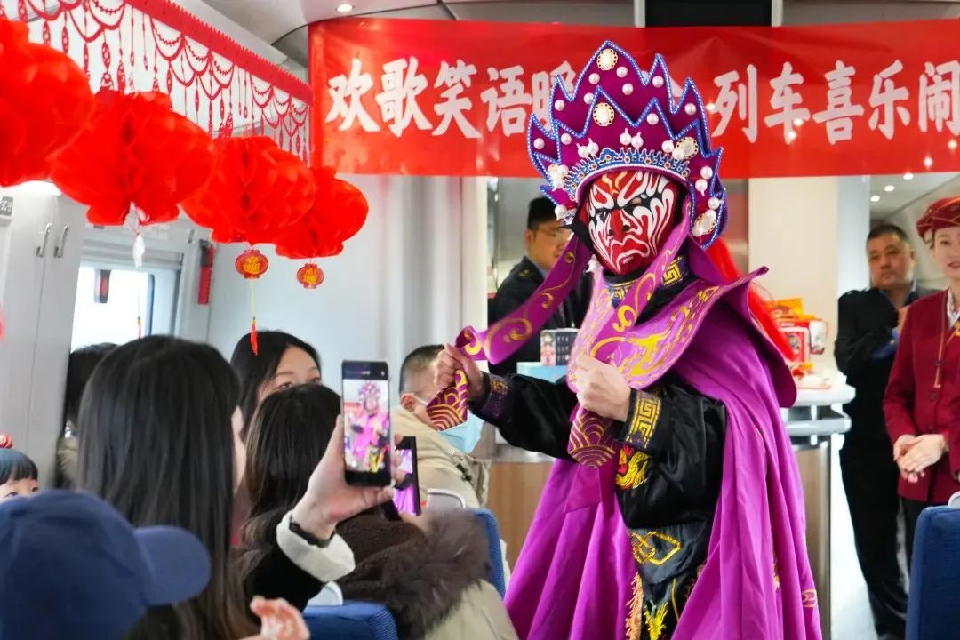 春运期间,青岛北站迎来大批乘客,大家纷纷在“我的铁路风景”主题活动现场合影留念。