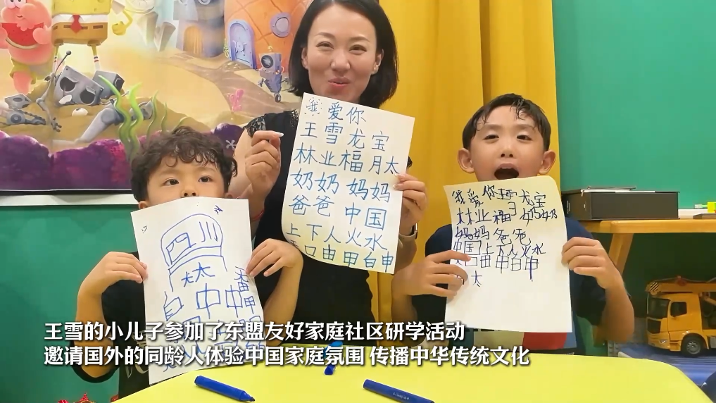 在王雪的影响下,她的家人也加入志愿者行列,志愿服务从个人选择变成了家风传承。王雪的小儿子参加了东盟友好家庭社区研学活动,邀请国外的同龄人体验中国家庭氛围,传播中华传统文化。