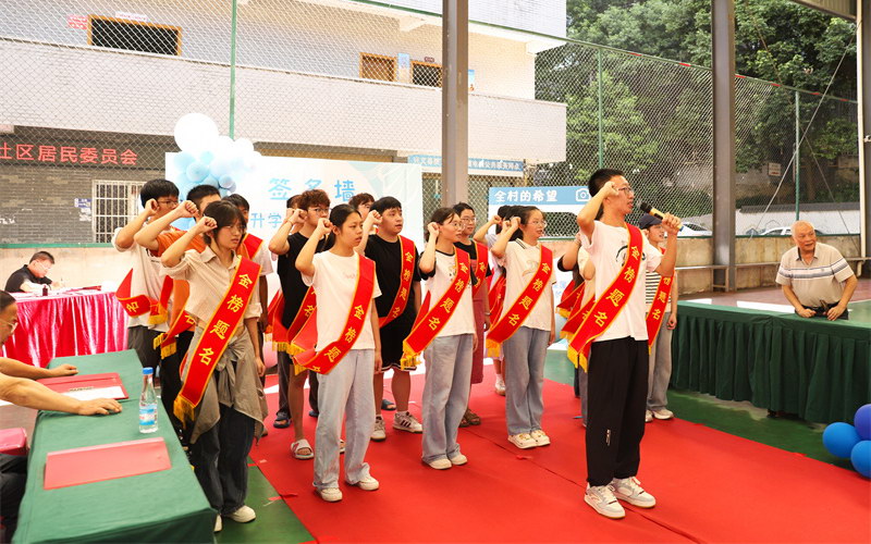 如今,兴文县各地纷纷推出主题鲜明、形式新颖的集体升学礼文明实践活动,让掌声和祝福来替代喧嚣的宴席。在僰王山镇、石海镇、大河苗族乡、五星镇、共乐镇、莲花镇等地,学子们走红毯、集体宣誓、集中签名,许下不负韶华、回报桑梓的青春誓言。