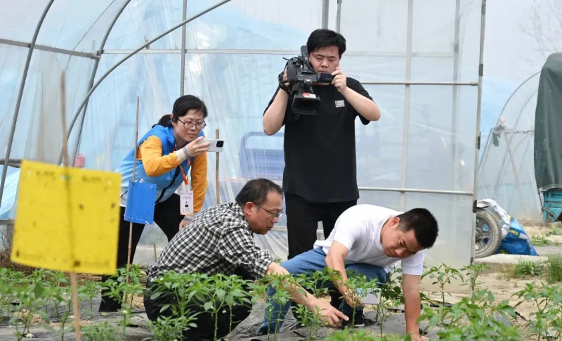 江西省宜春市高安市,新闻导师杨燕正在辣椒种植基地调研采访。江西省文明办供图