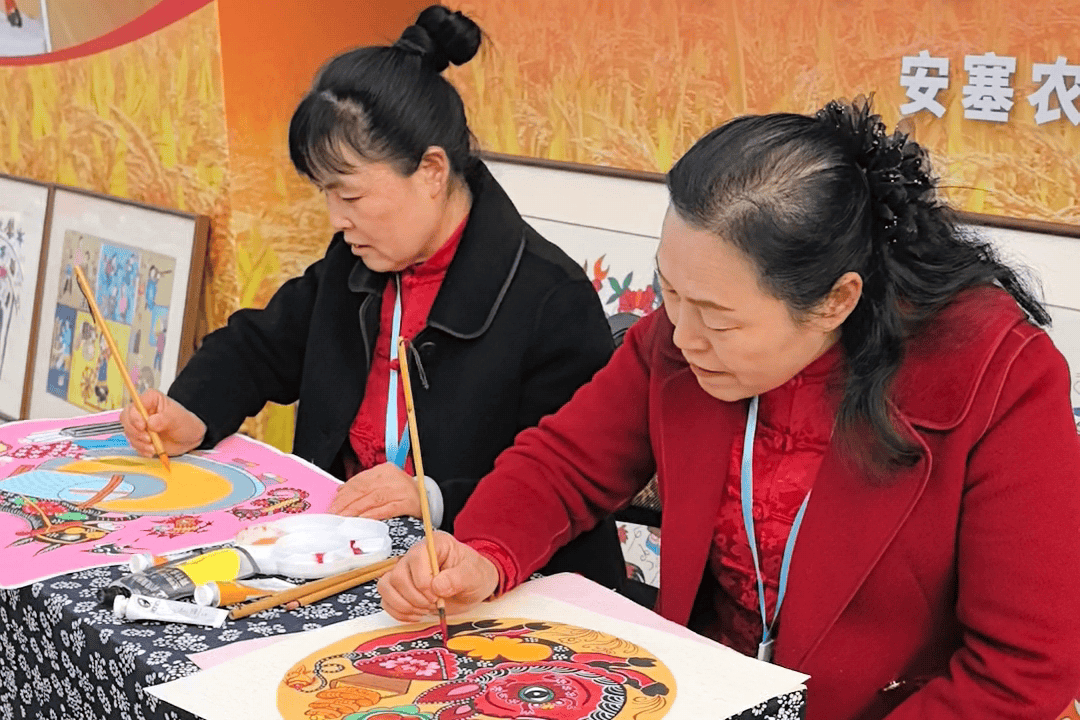 来自延安安塞南沟村的村民现场创作“移风易俗”主题农民画。王晓宁 摄