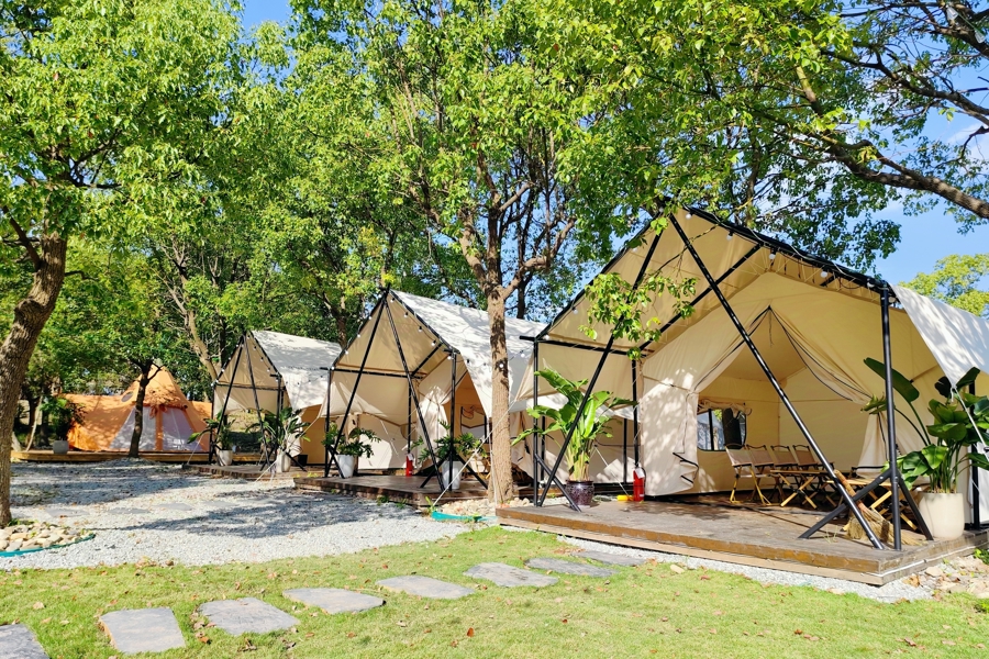 沿着彩绘历史文化墙装点的“棋杆路”漫步,田园风光尽收眼底。村中精心打造的“百亩营地”更是一片开阔绿洲,帐篷、桌椅设施齐全,成为市民逃离喧嚣、露营野餐、亲近自然的理想地。今年8月1日至8月20日,“非遗之夜”在这里上演,铁花飞舞、“火壶”生辉,游客可感受传统文化的魅力。