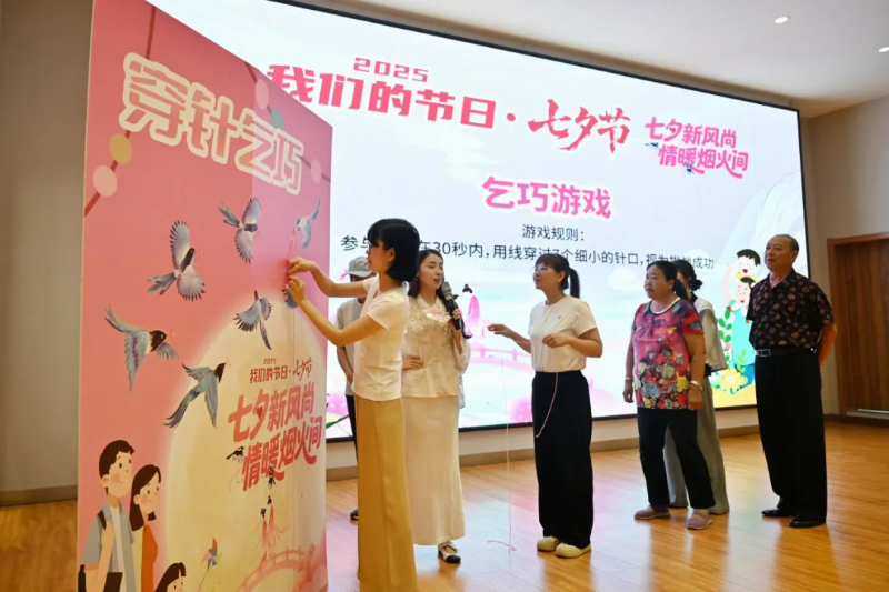 七夕节前夕,长春市朝阳区永昌街道办事处内座无虚席,“我们的节日·七夕节”——“七夕新风尚,情暖烟火间”主题文明实践活动正在进行中。近百名居民来到现场,赏歌舞、听弹奏、玩互动游戏、体验非遗,在民俗互动中触摸文化根脉。
