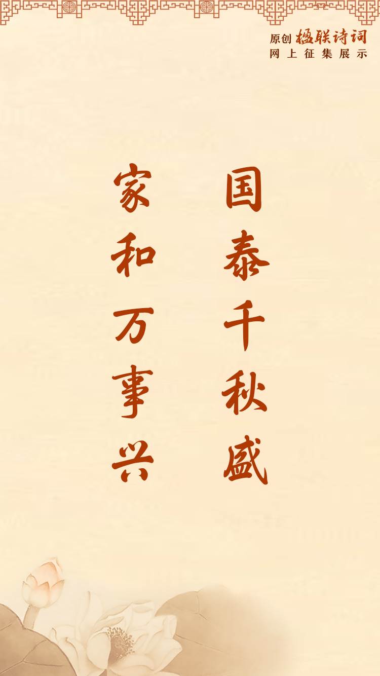 以简洁而有力的语言,勾勒出国家繁荣昌盛、家庭和睦美满的理想画卷,将国家层面的稳定发展与家庭层面的幸福安宁紧密相连,传达出人们对国与家共同繁荣的美好期盼。