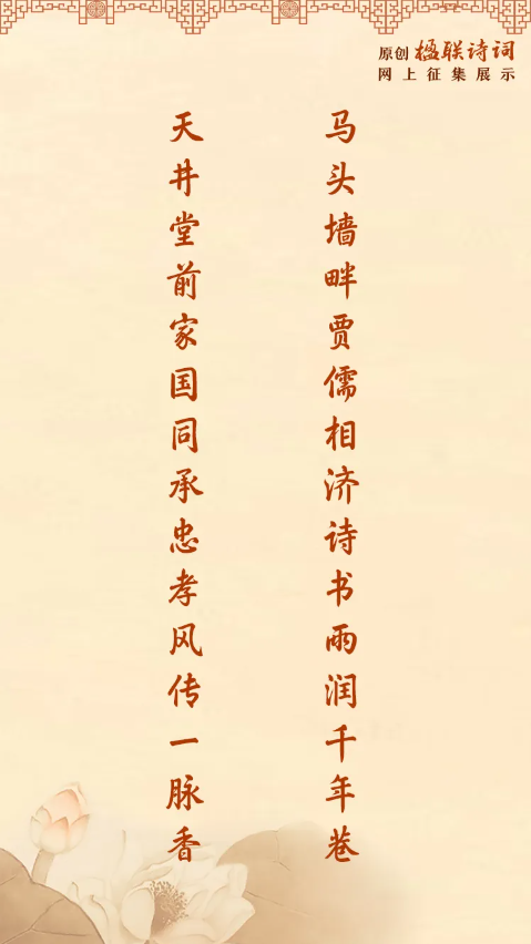马头墙畔贾儒相济诗书雨润千年巷 天井堂前家国同承忠孝风传一脉香 | 楹联赏析
