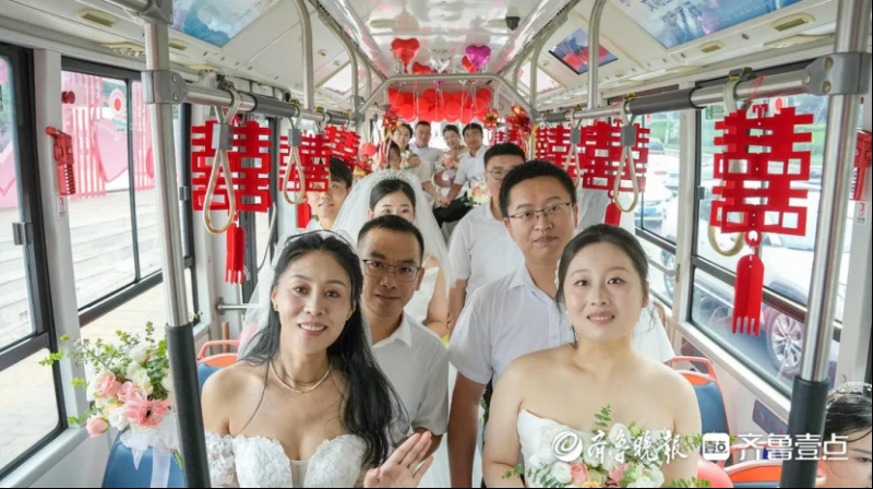 装扮喜庆浪漫的17路和51路公交车,载着新人们向幸福出发。