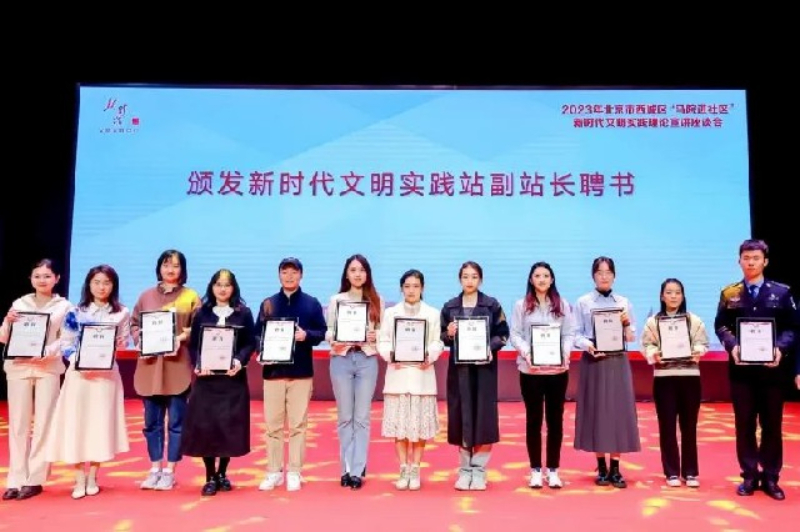 2023年10月19日,西城区新时代文明实践中心向“马院进社区”理论宣讲项目导师代表、挂职社区新时代文明实践站副站长青年宣讲员代表颁发了聘书。