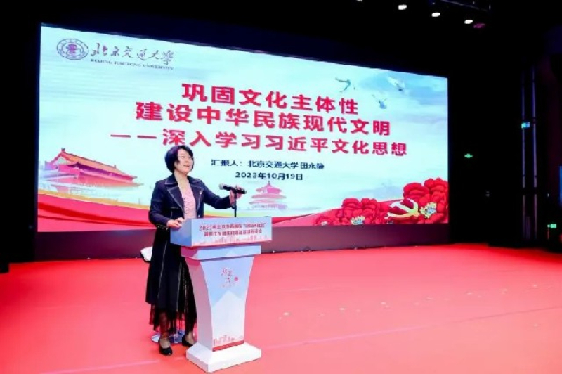 2023年10月,西城区举办“马院进社区”新时代文明实践理论宣讲活动,北京交通大学马克思主义学院副书记、副院长、教授田永静以《巩固文化主体性 建设中华民族现代文明——学习贯彻习近平文化思想》为题进行了理论宣讲。