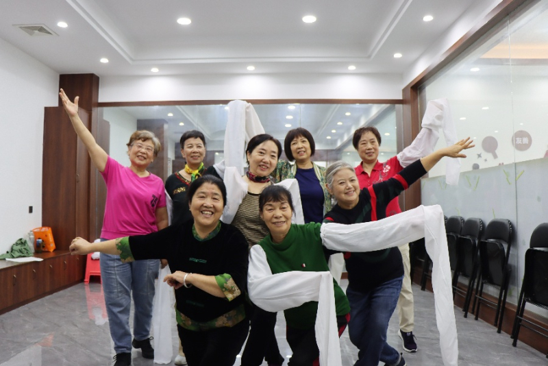 9月24日,南阳市人民公园艺术团舞蹈队正在卧龙区中兴社区新时代文明实践站内排练国庆节舞蹈。新华网记者 程丹 摄