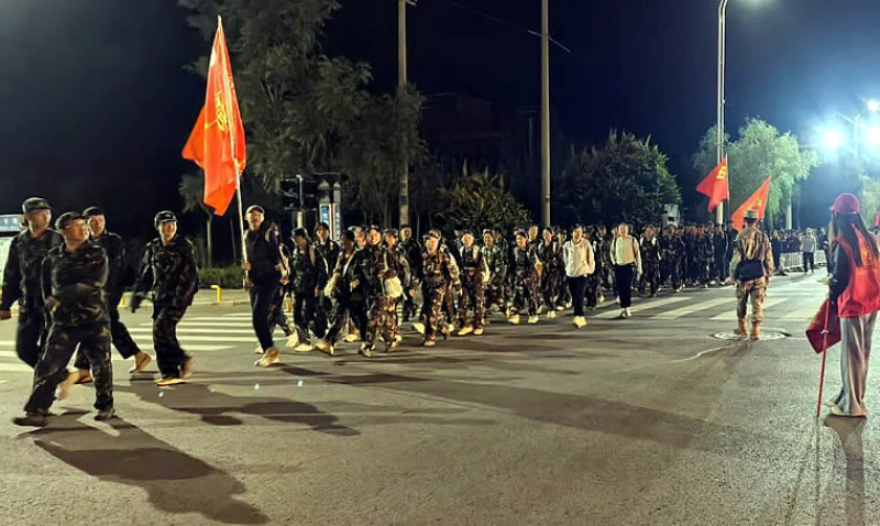 9月4日,吴忠市红寺堡区罗山中学开展“行走的思政课”暨军训拉练活动,1400余名师生徒步前往罗山飞行营地。凌晨四时三十分,随着出发指令的下达,同学们迈着铿锵步伐、喊着嘹亮口号沿既定路线前行,激昂的红歌在队伍中此起彼伏,浓厚的氛围激发了师生们浓浓的爱国热情。