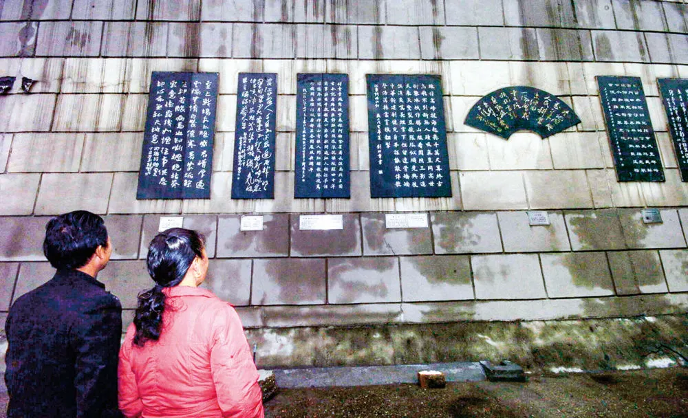 诗墙雕刻的作品十分传神,因为追求严谨和极致,诗墙还获得两项国家专利。诗墙是独到的,2016年荣获“最美中国榜”;诗墙是有底蕴的,2017年荣膺“中国十大诗意地标”之首;诗墙还被誉为“诗国长城”。