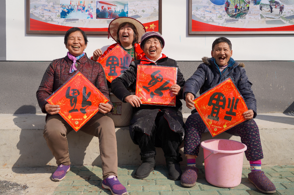 村民满脸笑容,手拿“福”字“晒”幸福。