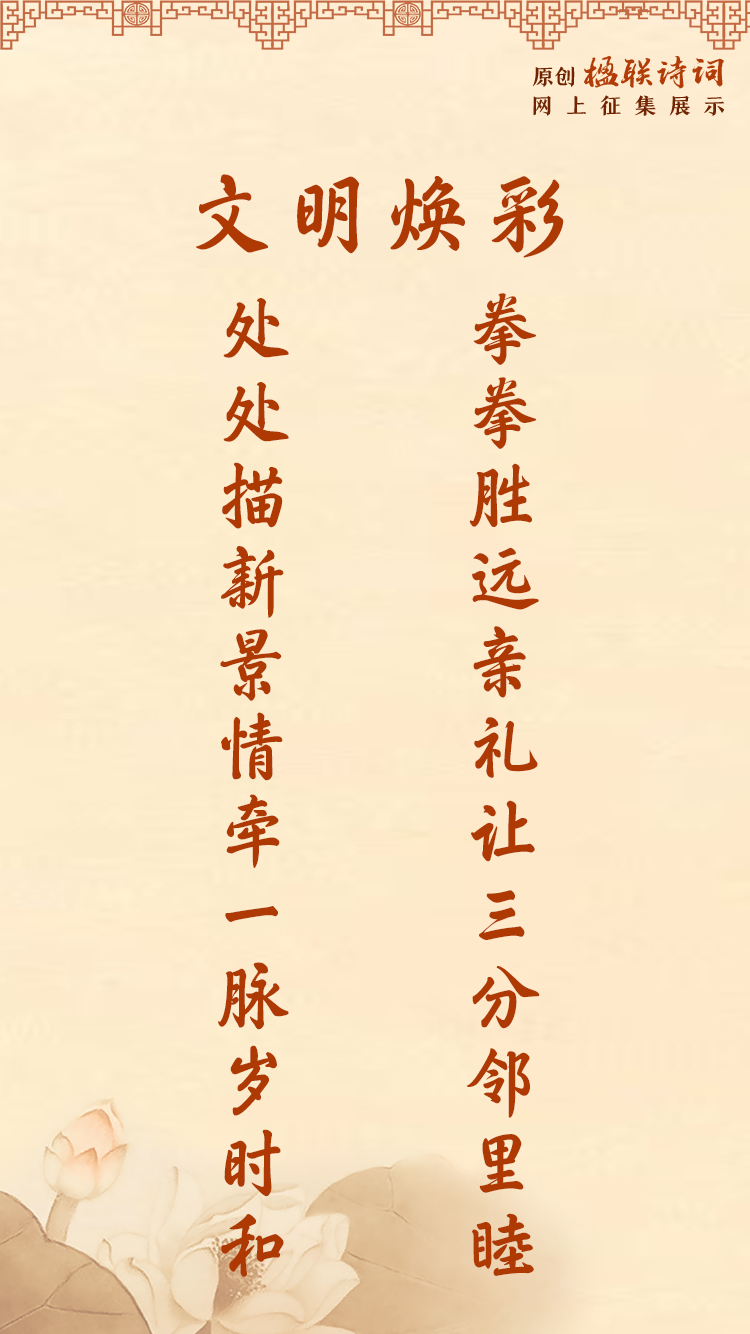 拳拳胜远亲礼让三分邻里睦 处处描新景情牵一脉岁时和 | 楹联-中国文明网