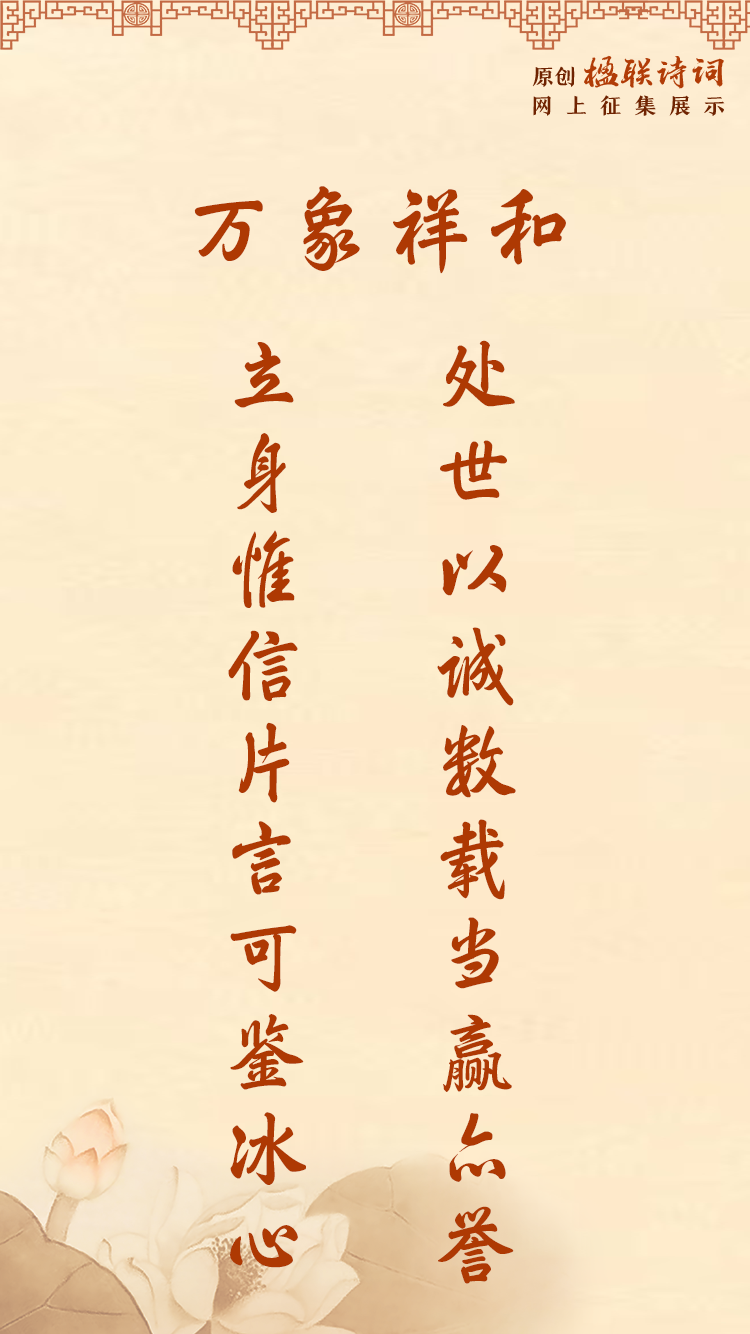 处世以诚数载当赢众誉 立身惟信片言可鉴冰心 | 楹联