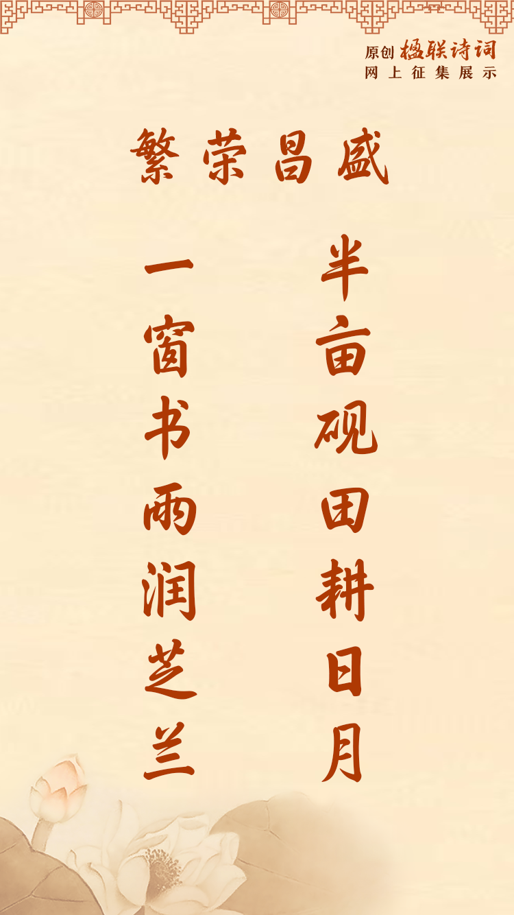 以诗会友,以联传情!中国精神文明网和中国楹联学会共同策划开展原创楹联诗词网上征集展示活动,让我们共赏楹联诗词,弘扬中华民族传统美德,共建家庭文明良好风尚。