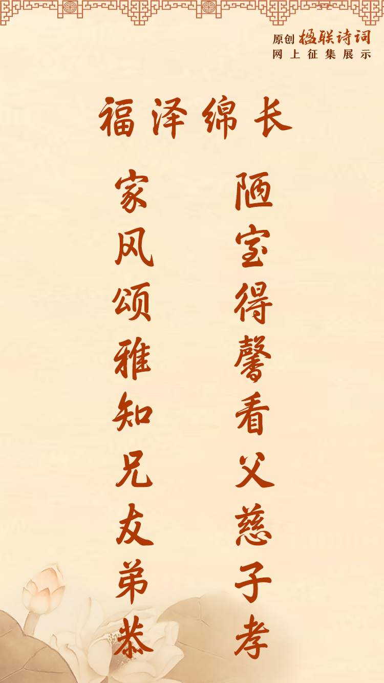 陋室得馨看父慈子孝 家风颂雅知兄友弟恭 | 楹联