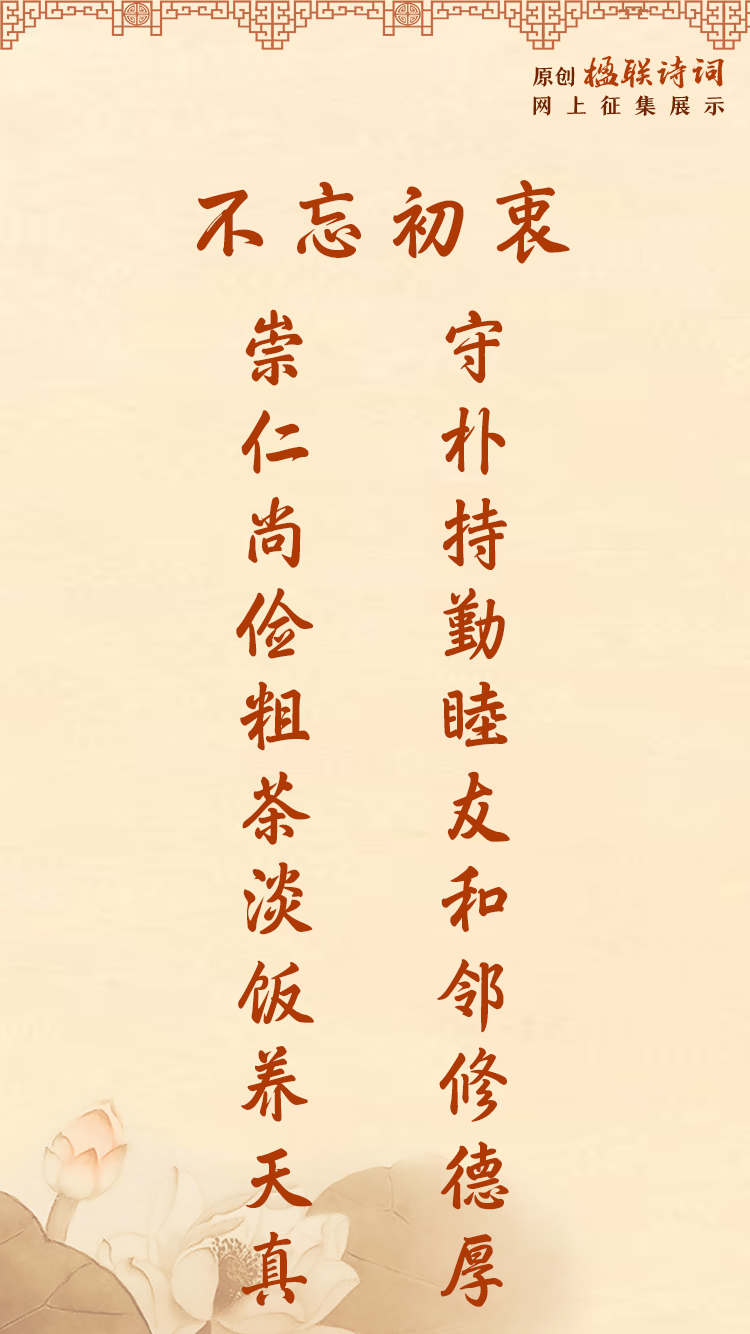 守朴持勤睦友和邻修德厚 崇仁尚俭粗茶淡饭养天真 | 楹联-中国文明网