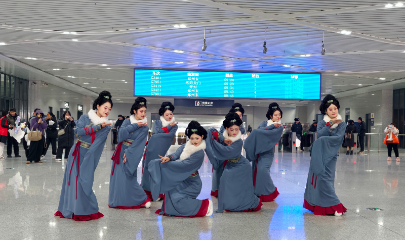 在南阳东站,以“驿路逢春·卧龙迎宾”为主题的特色文旅迎宾活动,用沉浸式文化体验为旅客送上新春祝福。中国文明网网友@张玲 摄