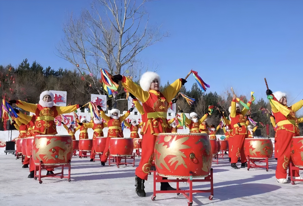 黑龙江省佳木斯同江市三村镇拉起河村以威风锣鼓、雪地秧歌等特色文化活动,勾勒出“雪韵村郭、鼓乐闹元宵”的生动图景。