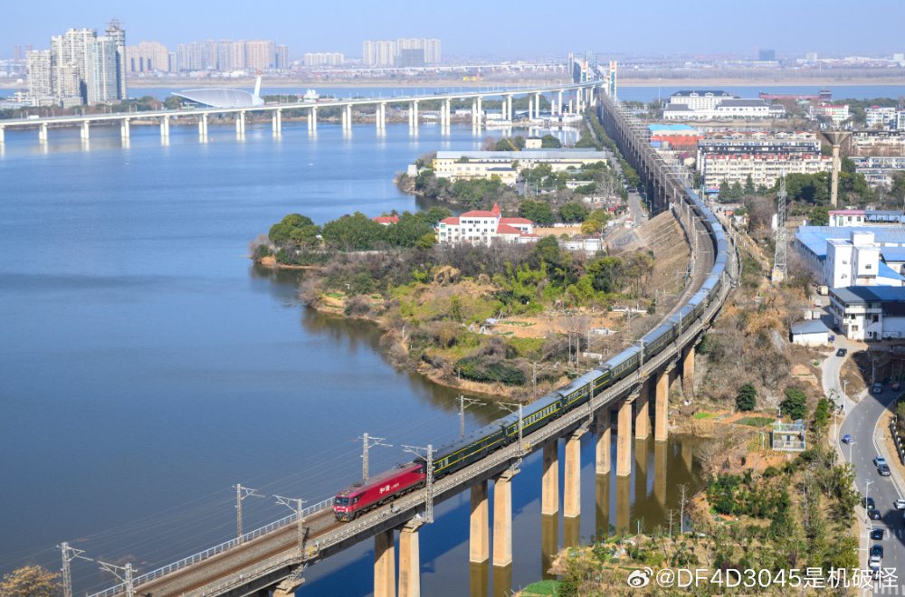 江风拂过长江大桥,列车载着时光驰行。中国文明网网友@DF4D3045是机破怪 摄
