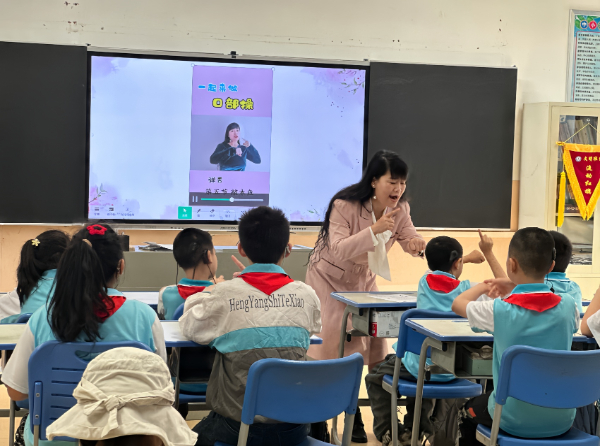 第十四届全国人大代表刘玲琍在为孩子们上课。(图片由受访者提供)