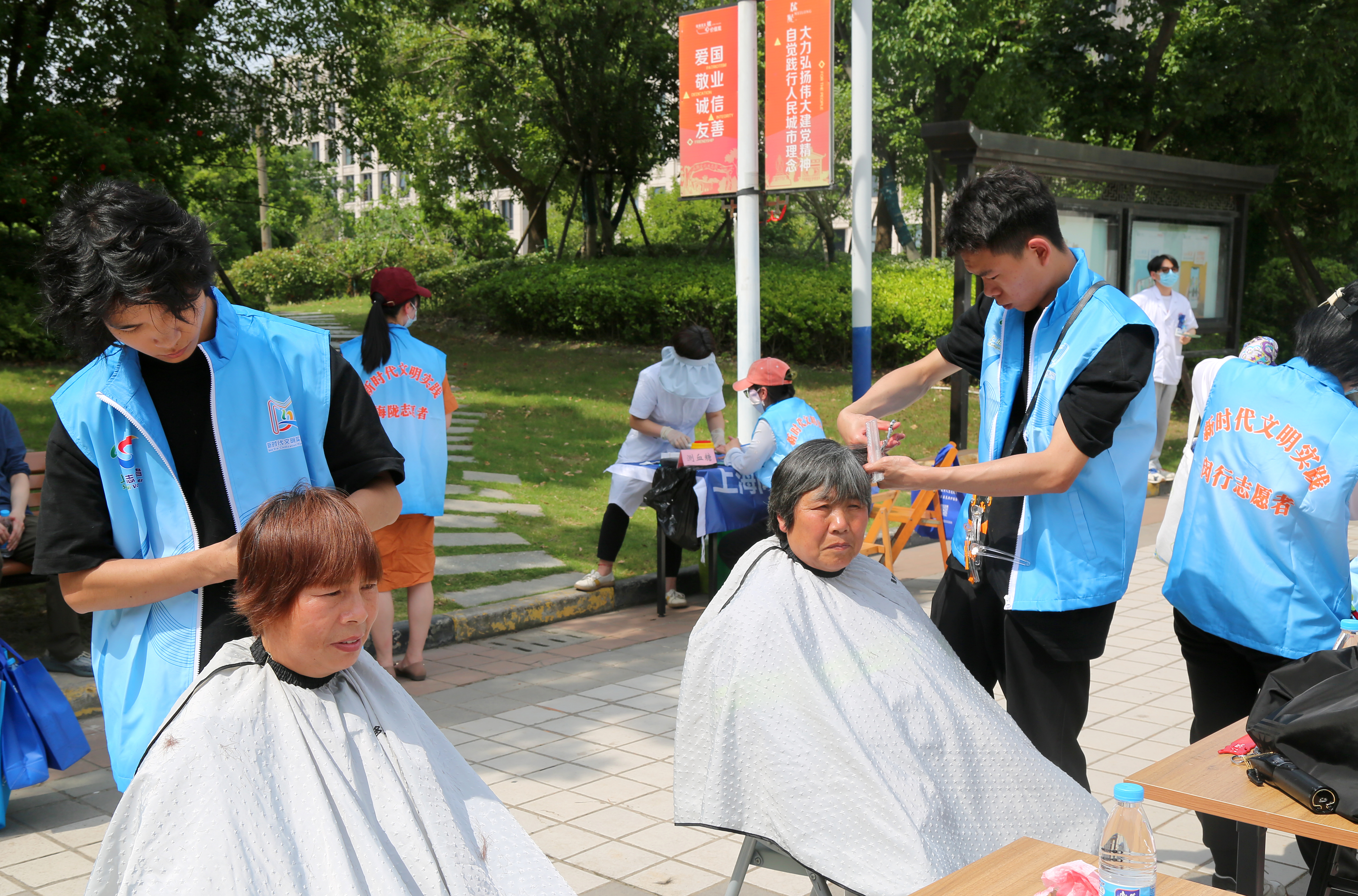 永联村为村民提供公益理发服务。
