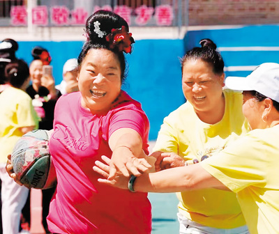 纪录类组照作品《“村BA”》之一:在贵州省台江县,当地妇女也参与到篮球运动中。韩 丹摄
