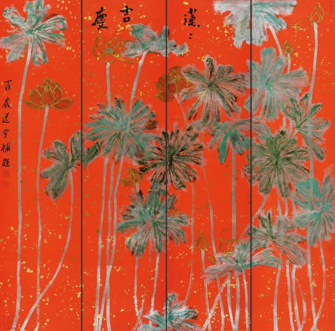 《莲莲吉庆》是饶宗颐先生荷花题材的代表作之一,荷花是饶宗颐先生自20世纪70年代以来非常喜欢的题材之一,他的荷花素有“饶荷”之称。通过荷花这一题材,先生既深刻表达出一位国学大师爱国、爱家乡的思想情怀,也寄托了他对人生观、世界观的深邃理解。