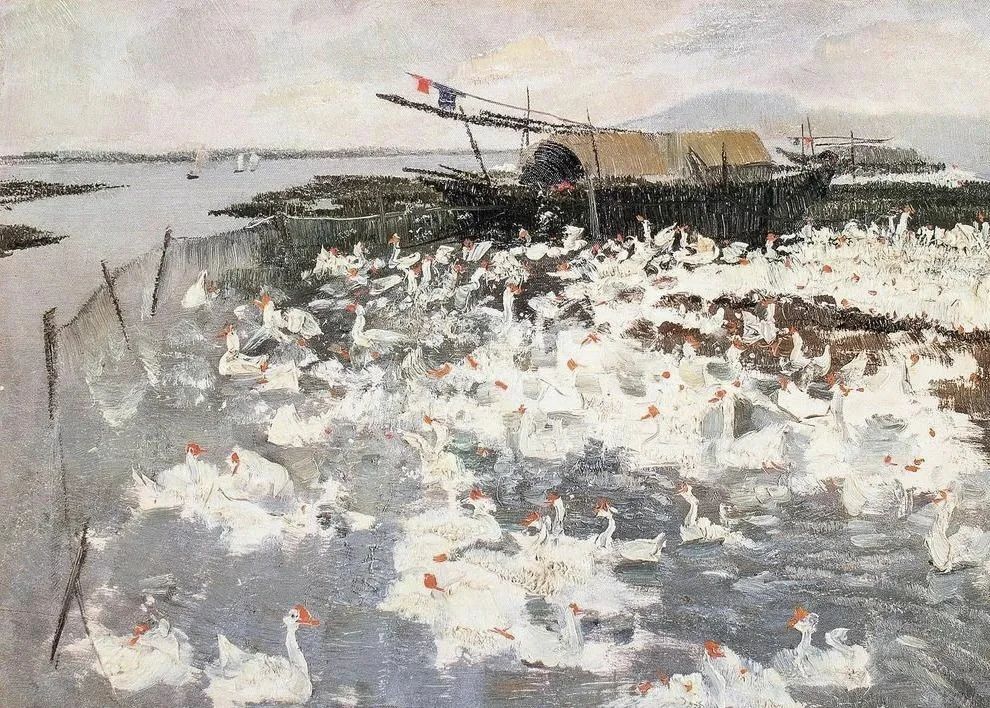 了解一件作品的光阴故事,读懂一段珍贵的文化记忆。知史明道订阅号推出“文明之声·云鉴馆藏”系列专栏,和您一起走进美术馆,欣赏馆藏精品,感悟经典魅力。今天为您介绍中国美术馆建馆60周年经典馆藏作品《太湖鹅群》。