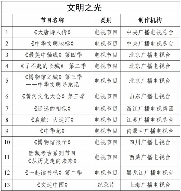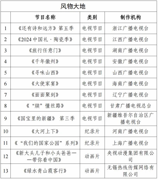 作为“锦绣荧屏 精彩视听”优秀电视节目宣推发布计划的首场活动,“电视陪你看中国”发布作品分成风物大地、文明之光、活力相约三个篇章。风物大地篇章包括《还有诗和远方》《千年徽州》《2024中国礼·陶瓷季》《我们的国家公园》等13个节目,通过人与大地、自然、物产的深入接触,展现气象万千的中国风貌;文明之光篇章包括《中华文明地标》《最美中轴线》《文运中国》等13个节目,通过探访散落在中华大地上的文明遗址、文化遗产,展现中华文明跨越时空的魅力;活力相约篇章包括《花儿绽放·乡村季》《极限挑战》《我在岛屿读书》等12个节目,以行进、纪实等手法,展现多彩生活、人间烟火和人们对心灵家园的向往追求。发布的电视节目立足挖掘内容资源、传播资源、文旅资源,带领广大观众开启一趟从不同角度饱览大美中国、华夏大地的视听旅程,助力文旅高质量发展。(记者 牛梦笛)