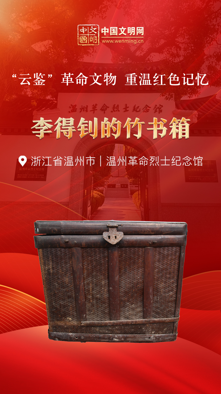 革命文物,承载党和人民英勇奋斗的光荣历史,是弘扬革命传统和革命文化、加强社会主义精神文明建设、激发爱国热情、振奋民族精神的生动教材。中国文明网“文明之声·云鉴馆藏”专栏邀您走进各地革命博物馆、纪念馆、党史馆等红色主题场馆,与广大青少年学生一起“云鉴”红色馆藏,汲取奋进力量。今天为您介绍温州革命烈士纪念馆的馆藏文物——李得钊的竹书箱。