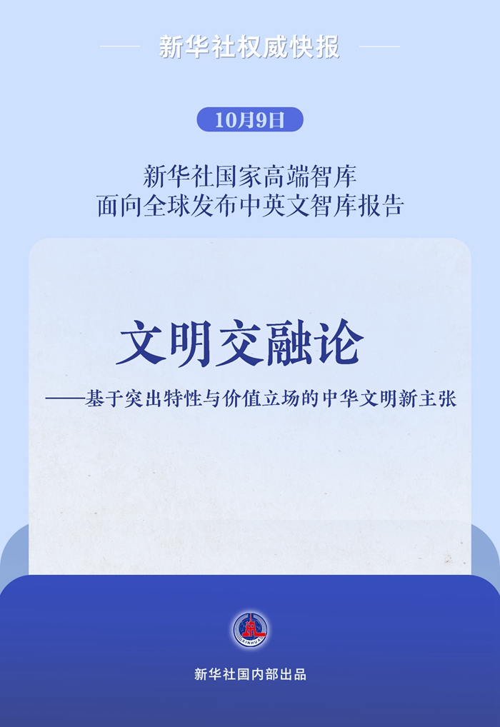 新华社广州10月9日电(记者李劲峰、郑天虹)新华社国家高端智库9日在于中山大学举办的相关活动上发布智库报告《文明交融论——基于突出特性与价值立场的中华文明新主张》。这是新华社研究阐释习近平文化思想、加强文化强国建设研究的最新成果。