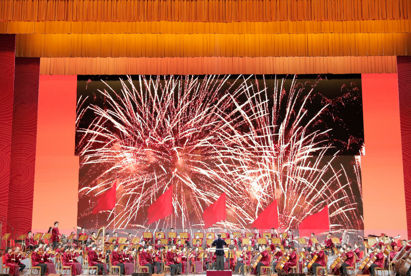 简约、庄重、大气的舞台美术设计,是音乐会给人的深刻印象。“我们在策划之初就将‘仪式庆典’作为舞美设计的基础,努力营造喜庆的氛围和庄重的仪式感,通过对舞台、服装道具、背景视频等进行创新设计,让整台音乐会呈现出浓厚的节日氛围、中国风格和中国气派。”沈晨说。