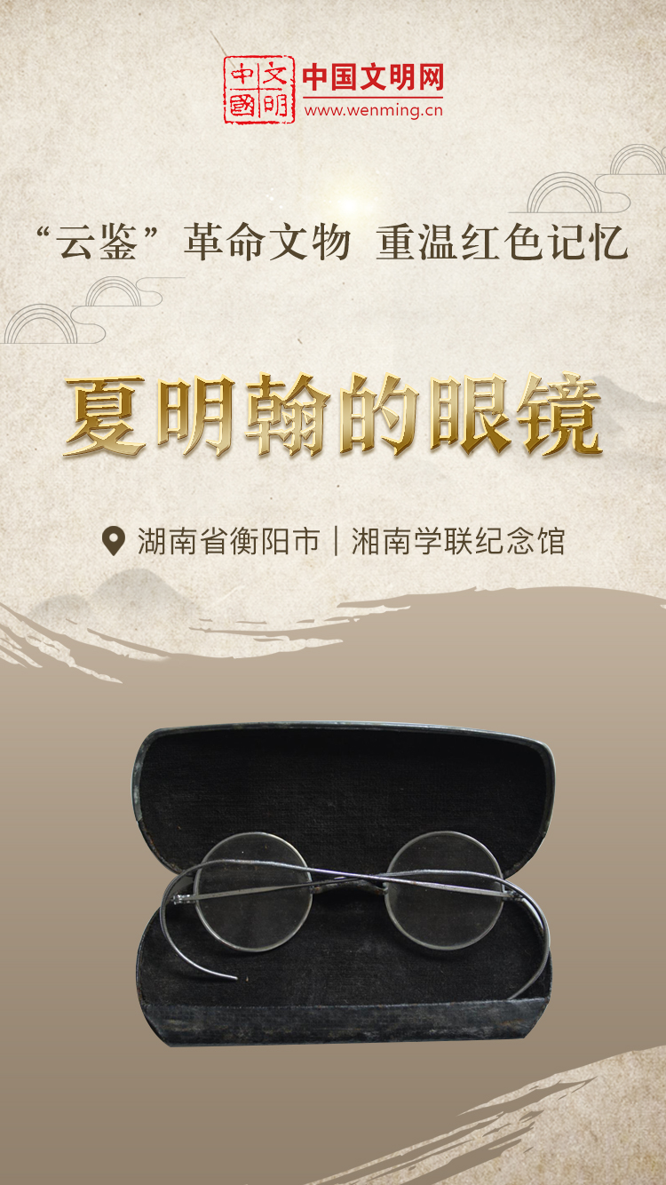 革命文物,承载党和人民英勇奋斗的光荣历史,是弘扬革命传统和革命文化、加强社会主义精神文明建设、激发爱国热情、振奋民族精神的生动教材。中国文明网“文明之声·云鉴馆藏”专栏邀您走进各地革命博物馆、纪念馆、党史馆等红色主题场馆,一起“云鉴”红色馆藏,汲取奋进力量。今天为您介绍湘南学联纪念馆的馆藏文物——夏明翰的眼镜。