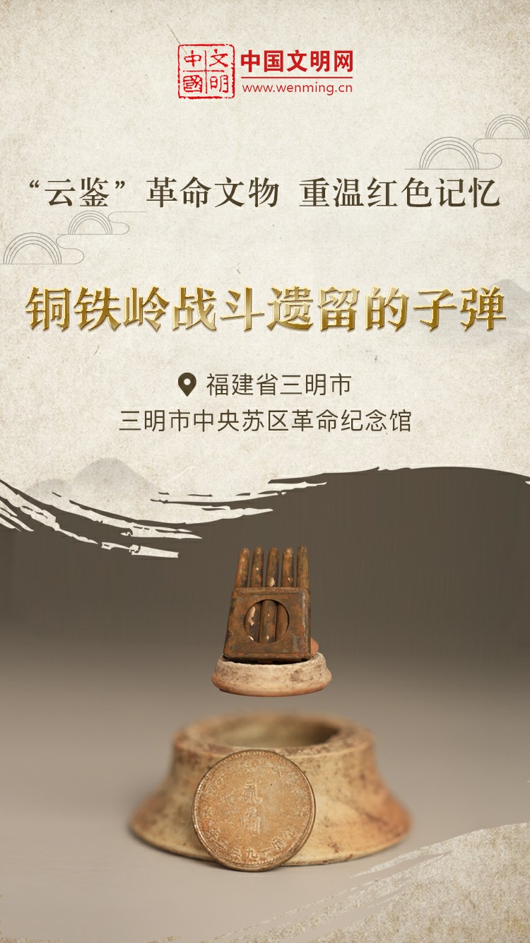 革命文物,承载党和人民英勇奋斗的光荣历史,是弘扬革命传统和革命文化、加强社会主义精神文明建设、激发爱国热情、振奋民族精神的生动教材。中国文明网“文明之声·云鉴馆藏”专栏邀您走进各地革命博物馆、纪念馆、党史馆等红色主题场馆,一起“云鉴”红色馆藏,汲取奋进力量。今天为您介绍三明市中央苏区革命纪念馆的馆藏文物——第五次反“围剿”铜铁岭战斗遗留的子弹及子弹夹。