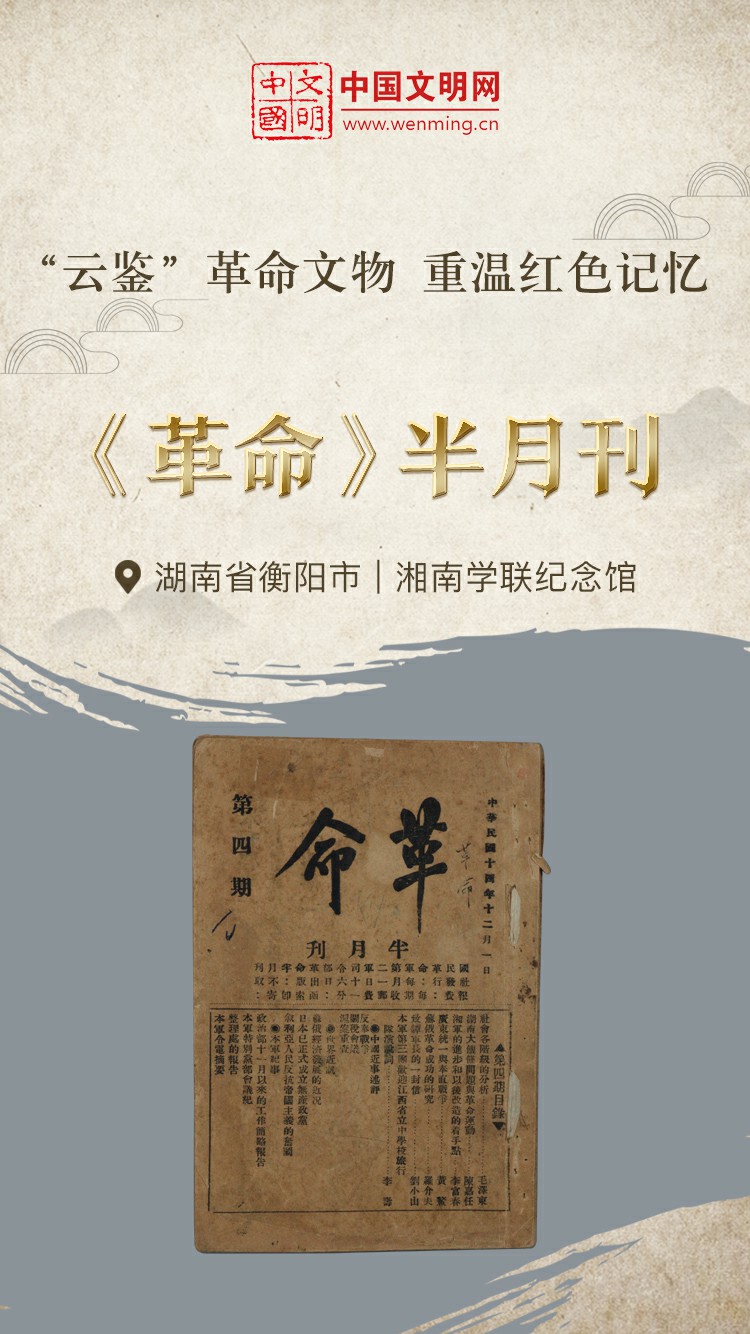 革命文物,承载党和人民英勇奋斗的光荣历史,是弘扬革命传统和革命文化、加强社会主义精神文明建设、激发爱国热情、振奋民族精神的生动教材。中国文明网“文明之声·云鉴馆藏”专栏邀您走进各地革命博物馆、纪念馆、党史馆等红色主题场馆,一起“云鉴”红色馆藏,汲取奋进力量。今天为您介绍湘南学联纪念馆的馆藏文物——《社会各阶级的分析》首刊《革命》半月刊。