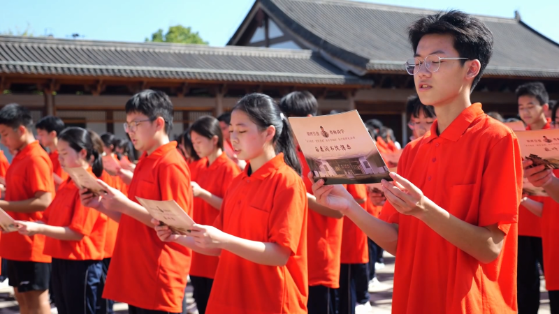 学生们齐诵《白鹿洞书院揭示》。 江洁 摄