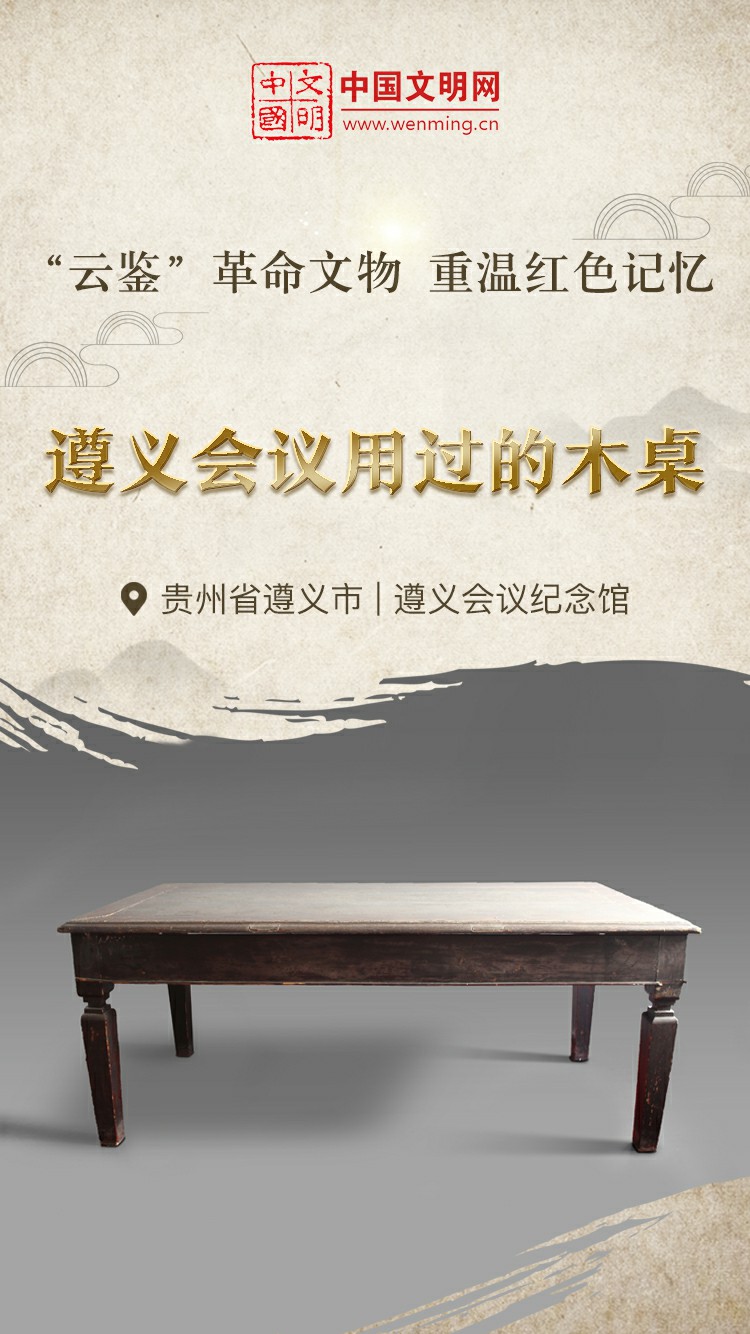 革命文物,承载党和人民英勇奋斗的光荣历史,是弘扬革命传统和革命文化、加强社会主义精神文明建设、激发爱国热情、振奋民族精神的生动教材。中国文明网“文明之声·云鉴馆藏”专栏邀您走进各地革命博物馆、纪念馆、党史馆等红色主题场馆,一起“打卡”红色地标,“云鉴”红色馆藏,汲取奋进力量。为纪念遵义会议召开90周年,今天为您介绍遵义会议纪念馆的馆藏文物——遵义会议用过的木桌。
