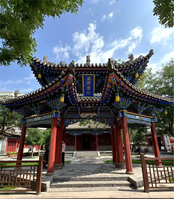 兰州的书院建筑风格融合了西北地域特色与传统建筑美学,每一处砖瓦都诉说着岁月的故事。五泉书院旧址坐落于兰州市城关区贤后街东口北端,作为兰州府官立书院,它坐北朝南,呈并列三组建筑布局。中轴线上,牌坊、仪门、照壁、大门、讲堂、退省斋、明道楼依次排开,气势恢宏;东西厢房作为学生斋房,安静雅致;东西两侧的三进四合院,西院上房为山长居所,东院上房供监院使用,大门小屋则住着院夫,整个书院布局严谨,秩序井然,无声地诉说着传统书院的庄重与肃穆。